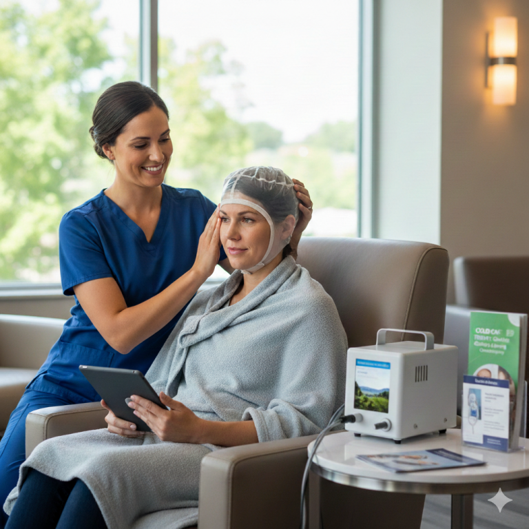 Our professional cold capping service helps reduce hair loss during chemotherapy by gently cooling the scalp to protect hair follicles. We provide expert guidance, comfortable support, and seamless assistance throughout your treatment sessions, ensuring you feel cared for every step of the way.